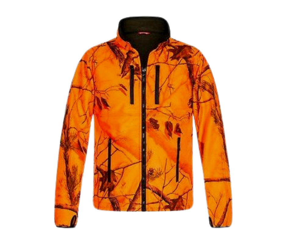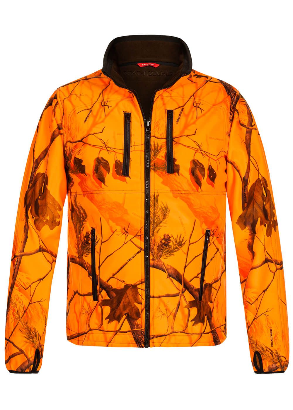 Bunda Halyard je vyrobena z fleecového materiálu dopněného nepromokavou a prodyšnou membránou „MAPLETEX“ . Jedna strana je z tmavě hnědého fleece a druhá strana z oranžového fleece s originálním vzorem dřeva Realtree®, který je ideální volbou na společné naháňky.