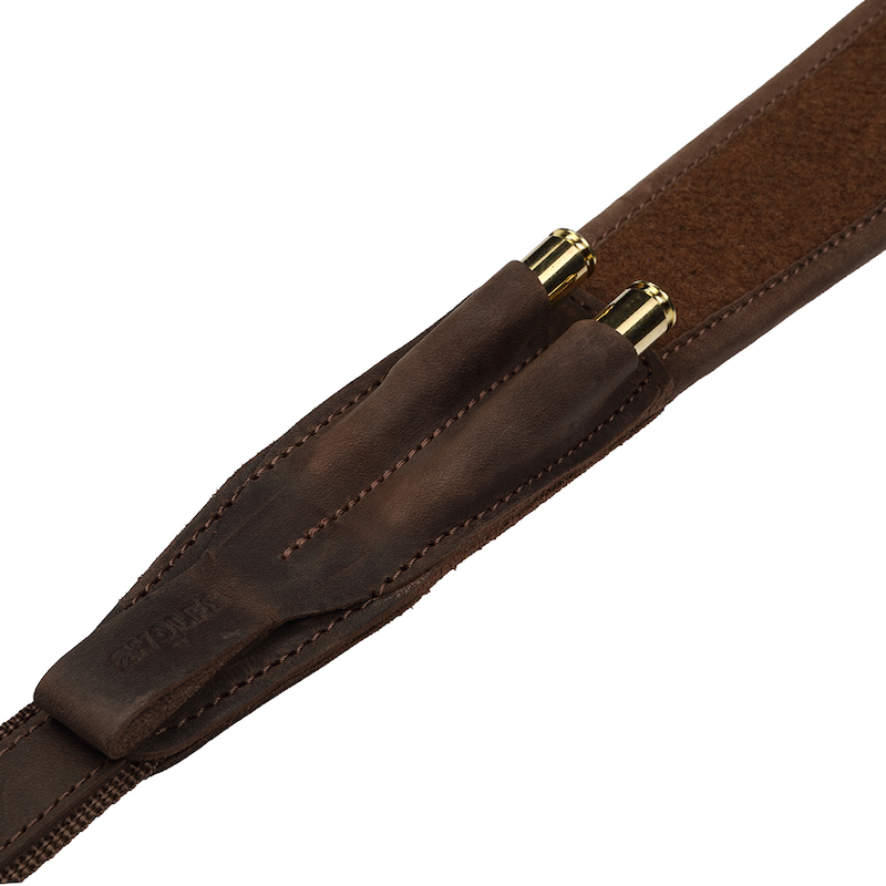 Lodenový řemen na kulovnici ls koženými doplňky je podšitý neoprenem s gelovou výstelkou pro maximální komfort při nošení zbraně. Řemen je vybaven 2 poutky na kulové náboje.