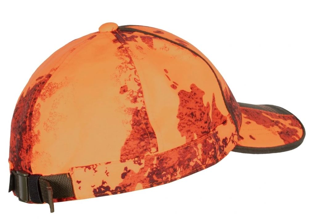 Lovecká vodě a větruodolná kšiltovka s camo potiskem v reflexní oranžové barvě a nášivkou s logem Pinewood.