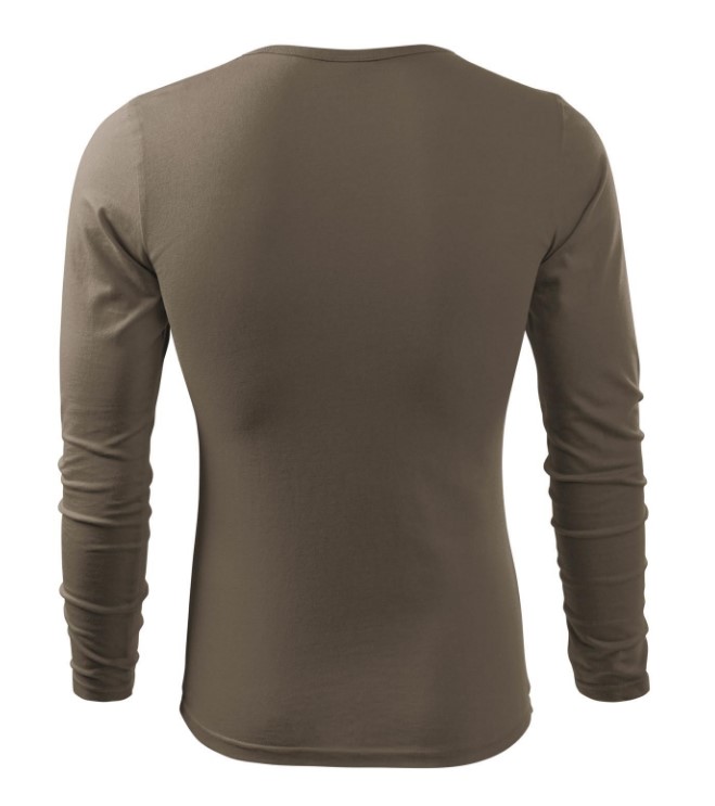 Bavlněné tričko s dlouhým rukávem přiléhavého střihu s bočními švy v hnědo-zelené barvě. Ramenní švy jsou zpevněné páskou.