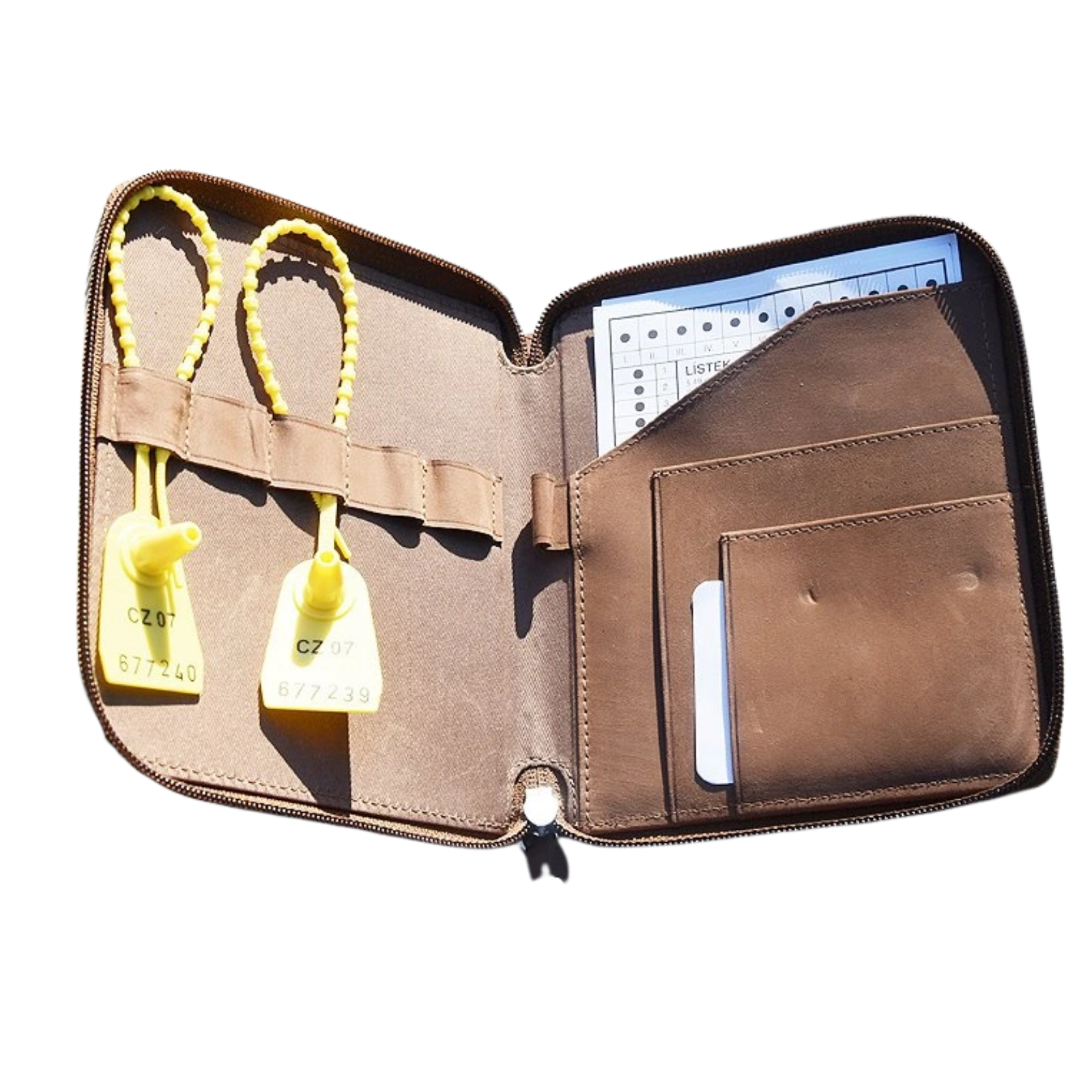 Praktické a zároveň velmi elegantní pouzdro na plomby z broušené kůže.