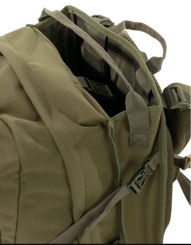 Batoh je z kartáčované polytrikotové voděodolné tkaniny. Nastavitelná výška a široká škála specifických přihrádek pro optimální rozložení zátěže na vaše záda. Ramenní popruhy jsou výškově nastavitelné jako postroj, proto lze batoh umístit do nejpohodlnější polohy. Nastavit lze i posuvný hrudní popruh, který je vybaven nouzovou píšťalkou a bederním pásem. Kompozitní konstrukční deska a ergonomické bederní, boční polstrování zajistí pohodlí na vašich trasách. Batoh je vybaven vnitřním měkkým pouzdrem pro nošení zbraně s horním přístupem, které lze složit dole a minimalizovat tak jeho velikost, když se nepoužívá.