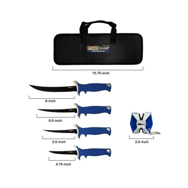 Sada je dodávána s nylonovým přepravním pouzdrem a dvoustupňovým brouskem na nože AccuSharp® Carbide-Ceramic s před zkosenými diamantově broušenými čepelemi z karbidu wolframu, které vám pomohou udržet si ostrost.