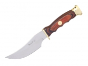 Menší stahovací nůž od španělské firmy Muela s mosaznou záštitou, dřevěnou rukojetí a mosaznou patkou je dodáván s koženým pouzdrem. Čepel nože je vyrobena z kvalitní molibden vanadiové oceli. Spodní strana rukojeti má vybrání na ukazovák pro práci v předsazeném úchopu. Anatomicky tvarovaná rukojeť je vyrobena z odolného dřeva Pakka. " Zlatá" záštita, patka a znak Muela vsazený do dřevěné rukojeti dodávájí noži elegantní vzhled.